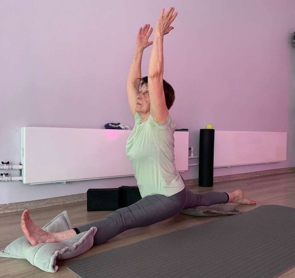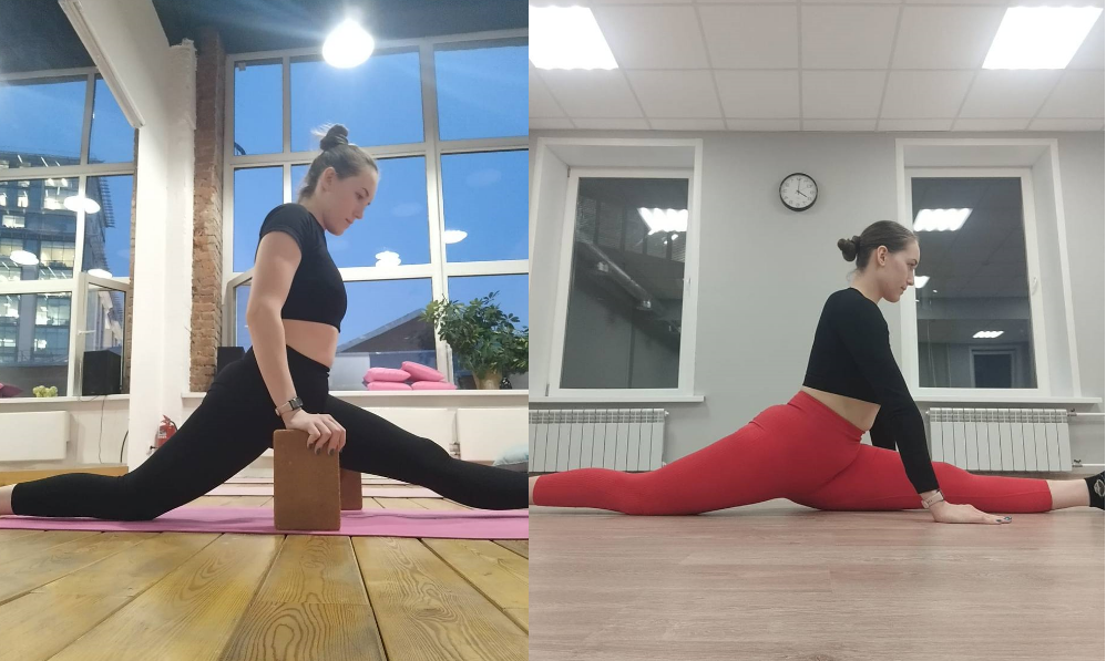 Мария пришла на занятия с несколькими целями. 1. Ни в одной студии её ни как не могли посадить на шпагат. 2. Хотела подтянуть фигуру.